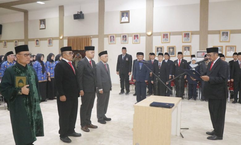 Elmitra News – Pemerintah Kabupaten Sukabumi kembali melakukan penguatan struktur birokrasi melalui pelantikan puluhan pegawai negeri sipil (PNS). Bupati Sukabumi Asep Japar memimpin langsung prosesi pelantikan dan pengambilan sumpah jabatan tersebut di Aula Sekretariat Daerah, pada Rabu (01/04/2026).