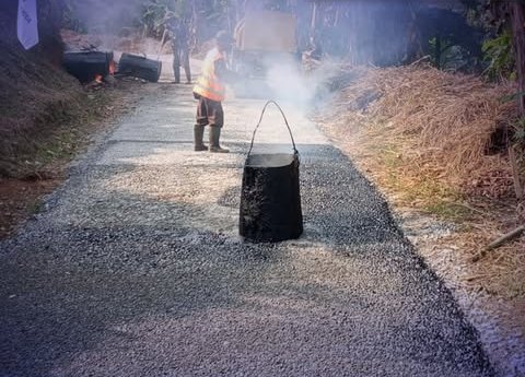 Sebelum proses pengaspalan, dilakukan terlebih dahulu pengerjaan lapisan penetrasi (lapen) sebagai dasar, disertai pemadatan menggunakan alat berat berupa mesin penggilas berbobot sekitar enam ton. Tahapan ini bertujuan memastikan struktur jalan lebih kuat dan tahan lama.