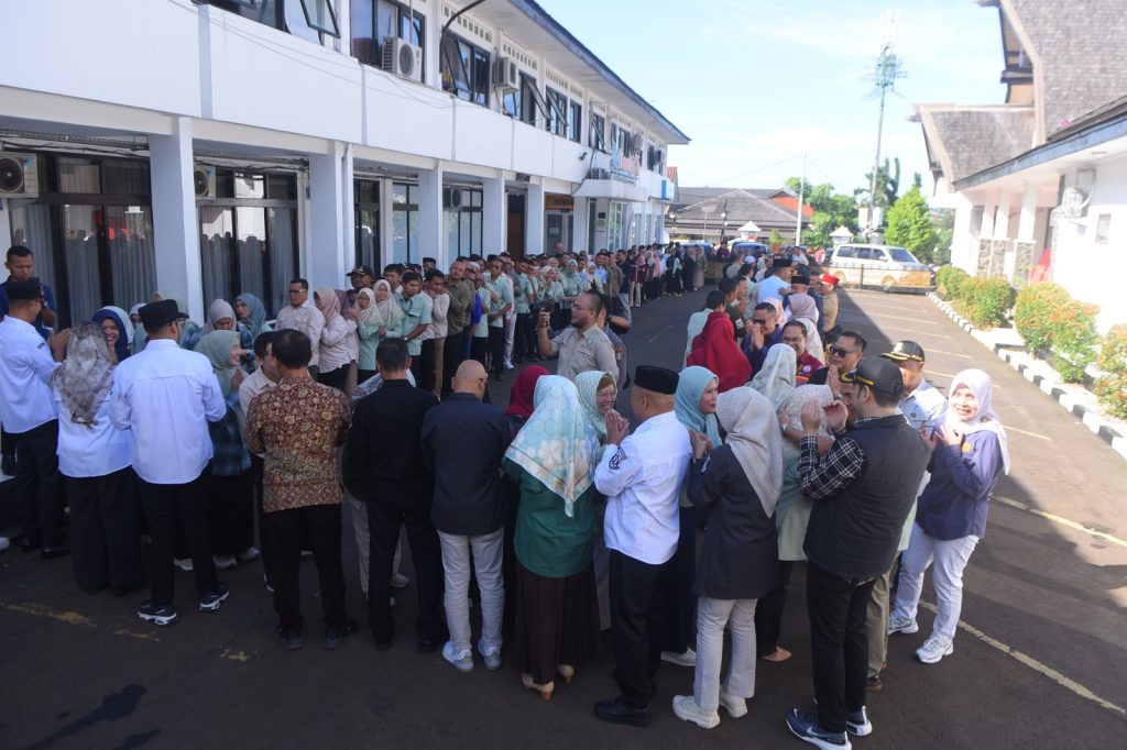 Elmitra News – Wali Kota Sukabumi H. Ayep Zaki memimpin Apel Pagi bersama yang dilanjutkan silaturahmi Idulfitri 1446 H di lingkup Pemkot Sukabumi di Lapangan Apel Setda Kota Sukabumi, Selasa (08/04/2025).