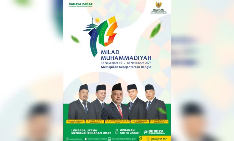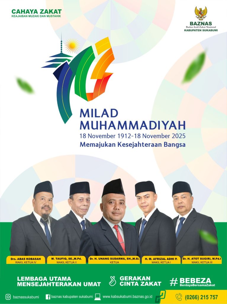 Elmitra News – Badan Amil Zakat Nasional (Baznas) Kabupaten Sukabumi Mengucapkan Selamat dan Sukses Milad ke-113 Muhammadiyah (18 November 1912 – 18 November 2025)