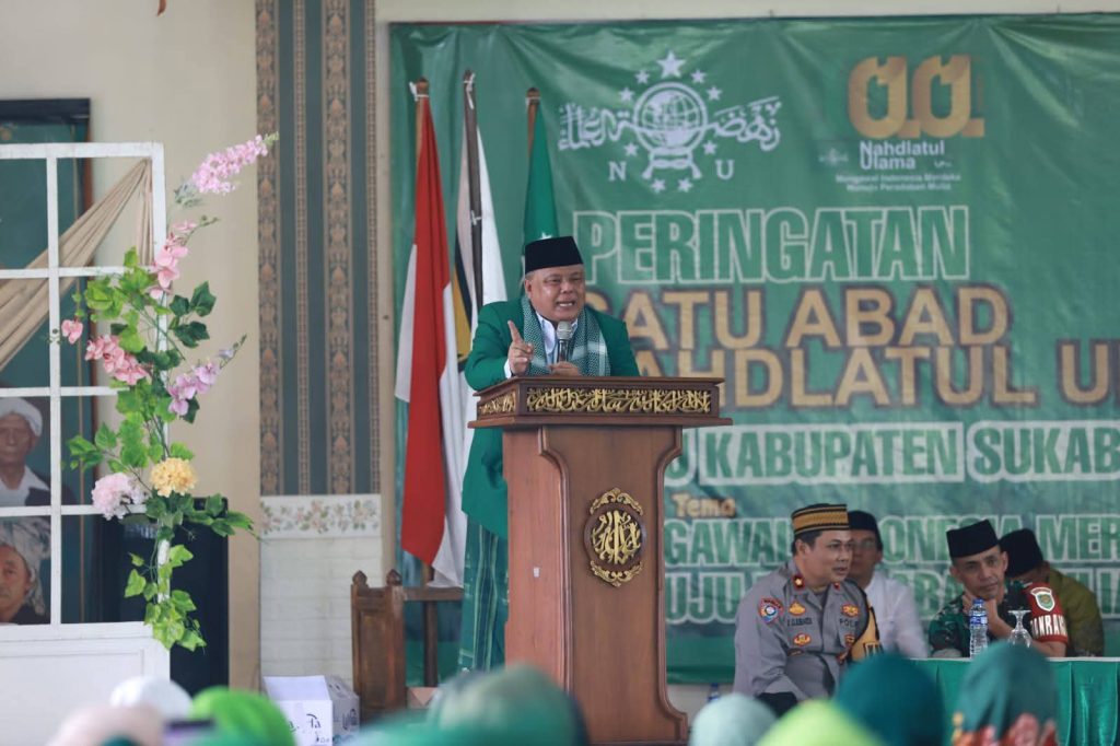 “NU akan terus bersinergi dengan pemerintah serta mengawal dan mendukung visi Kabupaten Sukabumi,” ujarnya dalam peringatan satu abad Nahdlatul Ulama yang dihadiri pula Bupati Sukabumi H. Asep Japar beserta Wakil Bupati Sukabumi H. Andreas di Sekretariat PCNU Kabupaten Sukabumi
