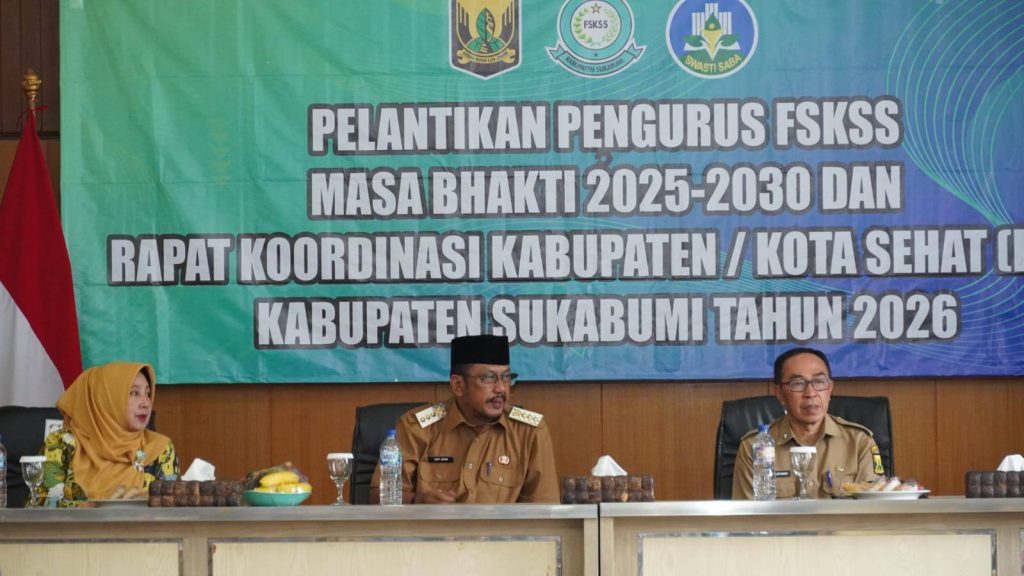 Elmitra News – Bupati Sukabumi Asep Japar resmi melantik jajaran pengurus Forum Silaturahmi Kabupaten Sukabumi Sehat (FSKSS) masa bhakti 2025-2030 di Aula PKK Pendopo Sukabumi, pada Senin (06/04/2026). Acara tersebut juga dirangkaikan dengan pembukaan Rapat Koordinasi Kabupaten/Kota Sehat (KKS) tingkat Kabupaten Sukabumi tahun 2026.